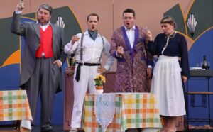 Among the men, David Horton impressed with his ringing tenor and well-timed comic gestures, while Samuel Pantcheff brought lyrical warmth and crisp articulation that strengthened the ensembles. Osian Wyn Bowen’s bright tenor injected youthful energy, and Aidan Edwards grounded the music with a firm, buffo-ready bass-baritone. The Baron, meanwhile, was the heart of the comedy, alternating bluster and vulnerability with perfect timing, and the music reflected both his bravado and his comic unraveling.