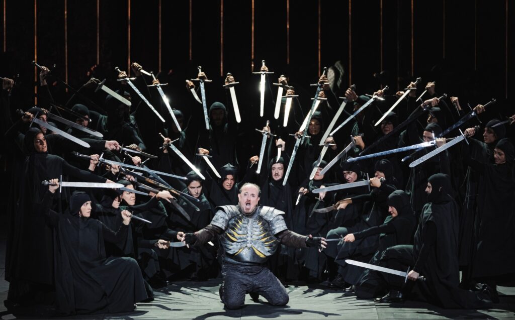 Baritone Franco Vassallo as Macbeth was outstanding in the role. His voice was unforgettable in its resonance and full-bodied timbre. His opening duets with Banquo, as leaders of the Scottish Army, ‘Giorno non vidi mai si fiero’ and ‘Due vaticini compiuti or sono,’ featured his solid vocal technique and unwavering hunger for power — a lust arising from his guts after the local witches address Macbeth as Thane of Cawdor and King of Scotland and Banquo as ‘the father of kings.’ Vassallo trembled with fear and desire when singing about how his takeover and crowning achievements would mark history forever. All the while, questions spiraled in the back of his mind about why the witches foresaw Banquo as the father of kings, and not himself.