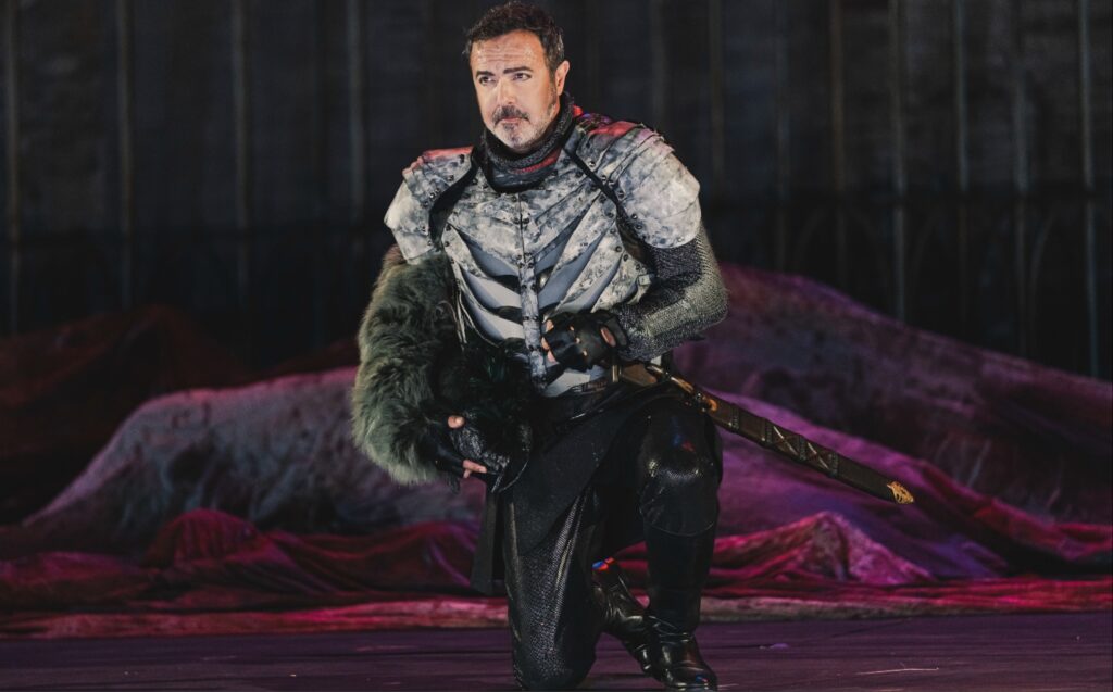 Vassallo’s duet with Lady Macbeth, ‘Or tutti sorgete,’ was thrilling! The chemistry between the two continued to build as a festering psychosis took hold inside them. It was Vassallo’s vocal performance during ‘Sappia la sposa mia,’ ‘Mi si affaccia un pugnal?,’ ‘Regna il sonno su tutti,’ and ‘Fatal mia donna,’ that made this “Macbeth” jaw-dropping. Vassallo’s vocal climactic arc was refined and intelligent in its delivery and performance. He lead the night along with Conductor Carminati, highlighting the undeniable beauty of Verdi’s score. It felt as though the walls of the Sferisterio Arena were full of Vassallo’s tightening grip on ‘true power’ and the discourse that arises when ‘achieving it.’