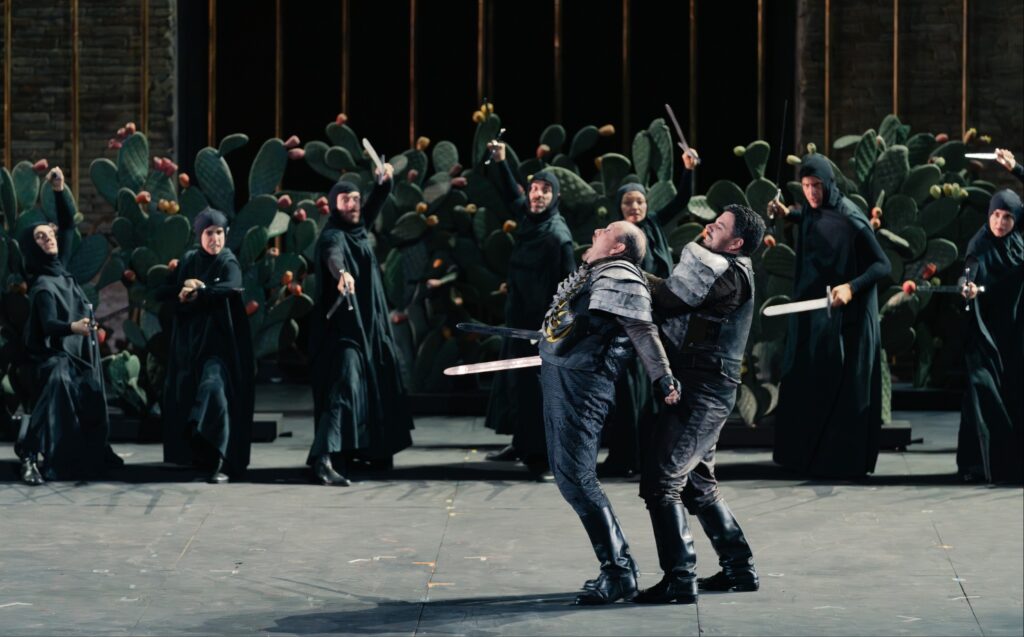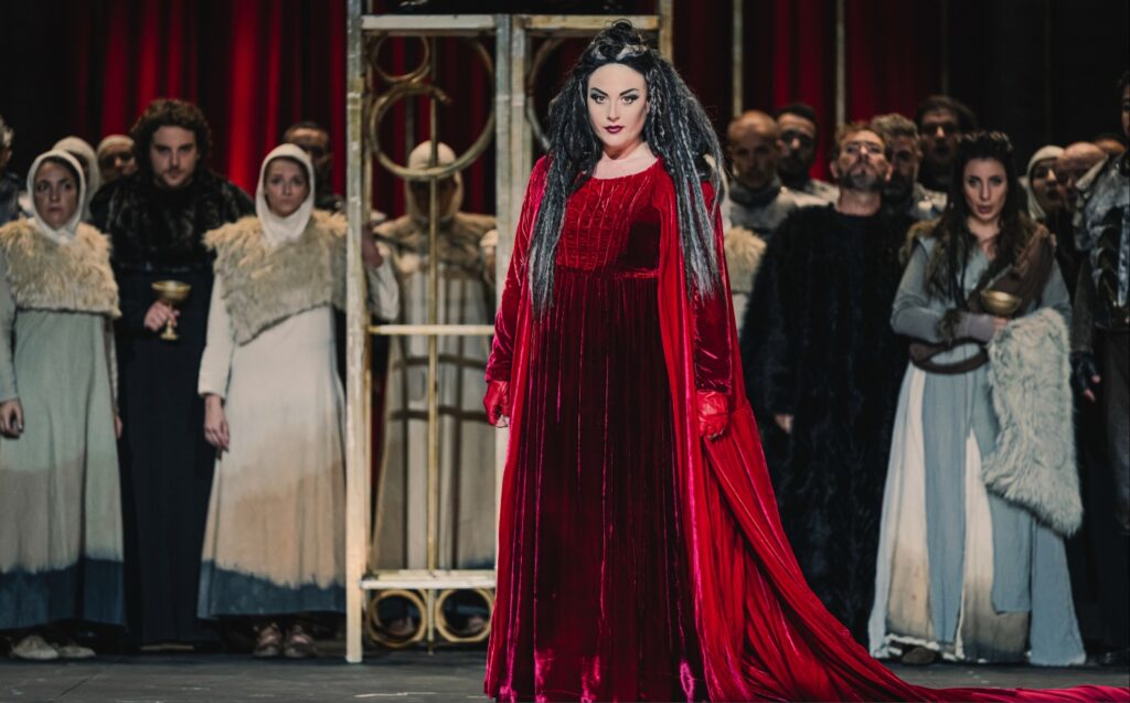 Giuseppe Verdi’s “Macbeth,” with libretto by Francesco Maria Piave, is based on William Shakespeare’s “The Tragedy of Macbeth” (1606) and was first performed in Florence at Teatro della Pergola on March 14, 1847. This year, for Macerata Opera Festival’s 61st season, the opera is revived by Federico Gagliardi along with Director Emma Dante and Conductor Fabrizio Maria Carminati. The production also includes set designs by Carmine Maringola, costumes by Vanessa Sannino and costume assistant Margherita Platè, lighting by Christian Zucaro, choreography by Manuela Lo Sicco, master-of-arms Sandro Maria Campagna, and Assistant Director Roberto Tusa.