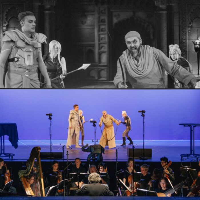 The text, written by Franz Grillparzer, stood out for its elevated, Romantic language which unfolded after the phrase “Separated from the burden and toil of prose, I go forth into the realm of Poetry.” In this way, Phillips laid out imagery ranging from the quaint and natural to the mythic and divine, such as “Defiant Poseidon, was it you, joking and mumbling down there so sweetly? …Will you, Parthenope, bring peace to the waves?”