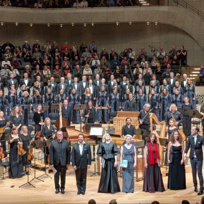 The venue dealt the orchestra a bad hand, so New Camerata went with the best solution. The strange positioning provided Khan with a direct line of sight to the singers and vice versa, obviously important. While there were other options, none were optimal. The stage was too small to put the orchestra out front and had they been placed there, the audience wouldn’t have heard much singing at all. Sticking the orchestra behind the vocalists would’ve caused a space problem while seating the orchestra stage right was no better than stage left because they’d still be playing toward a wall. If Khan is to be faulted, it’s for not compensating sufficiently for the wall’s effect.