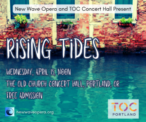 By David SalazarNew Wave Opera will present “Rising Tides,” a concert exploring climate grief, the natural world, and social justice through opera and song, as part of The Old Church Concert Hall’s Free Lunchtime Concert Series in Portland.
