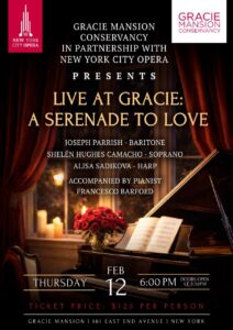The concert will be held on Feb. 12, 2026 at Grace Mansion Conservancy and will feature baritone Joseph Parrish, Shelen Hughes Camacho, and Alisa Sadikova. They will be accompanied by Francesco Barfoed.