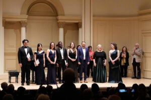 Bass-baritone Matthew Dexter received the Watson Family Award, while mezzo-soprano Veronica Roan received the William Grogan Award. Tenor Ryan Lustgarten was the recipient of the Robert & Winifred Connelly Green Award and soprano Melanie Spector took home the Leopold O. Damrosch Award. Finally, soprano Erinn Sensenig received the Oratorio Society Community Prize.