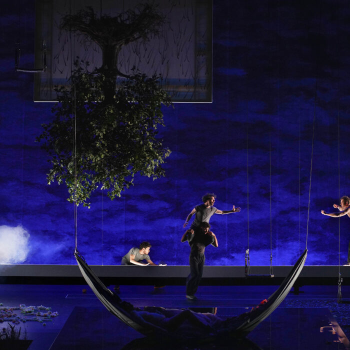 But this production with its awareness of the centuries-old resonance of this tale was no monolith. There was even humor in tenor Louis Hurley and his three colleagues’ depiction of the sailors who will conduct Aeneas away, what with their seafarers’ West Country accents. And additional dance movements, choreographed by Shannon Burns, raised the pure entertainment value.