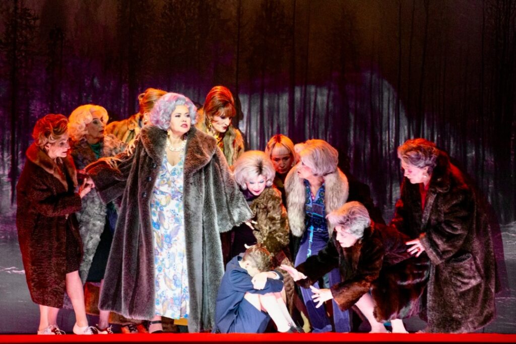 The singers were the most convincing. Samuel Hasselhorn portrayed Peter with a smooth baritone as a searching, torn protagonist who, until the very end, is unsure whether he has wished for–or received–the right thing. Katarina Bradić impressed as the mother with a convincing mezzo that made the character’s ambivalence between care and guilt palpable. Rosie Aldridge dominated the ritual scenes as the goddess Anubis with her imperious, powerful mezzo. Sunnyi Melles took on the speaking role of Azaël: a desert demon, sin-eater, a hermaphroditic figure who deliberately comes across as anything but sympathetic. Against these mythological primal forces, Peter’s girlfriend Clara—sung by Sophia Burgos with a crystal-clear soprano—ultimately stands no chance as the embodiment of closeness and warmth.